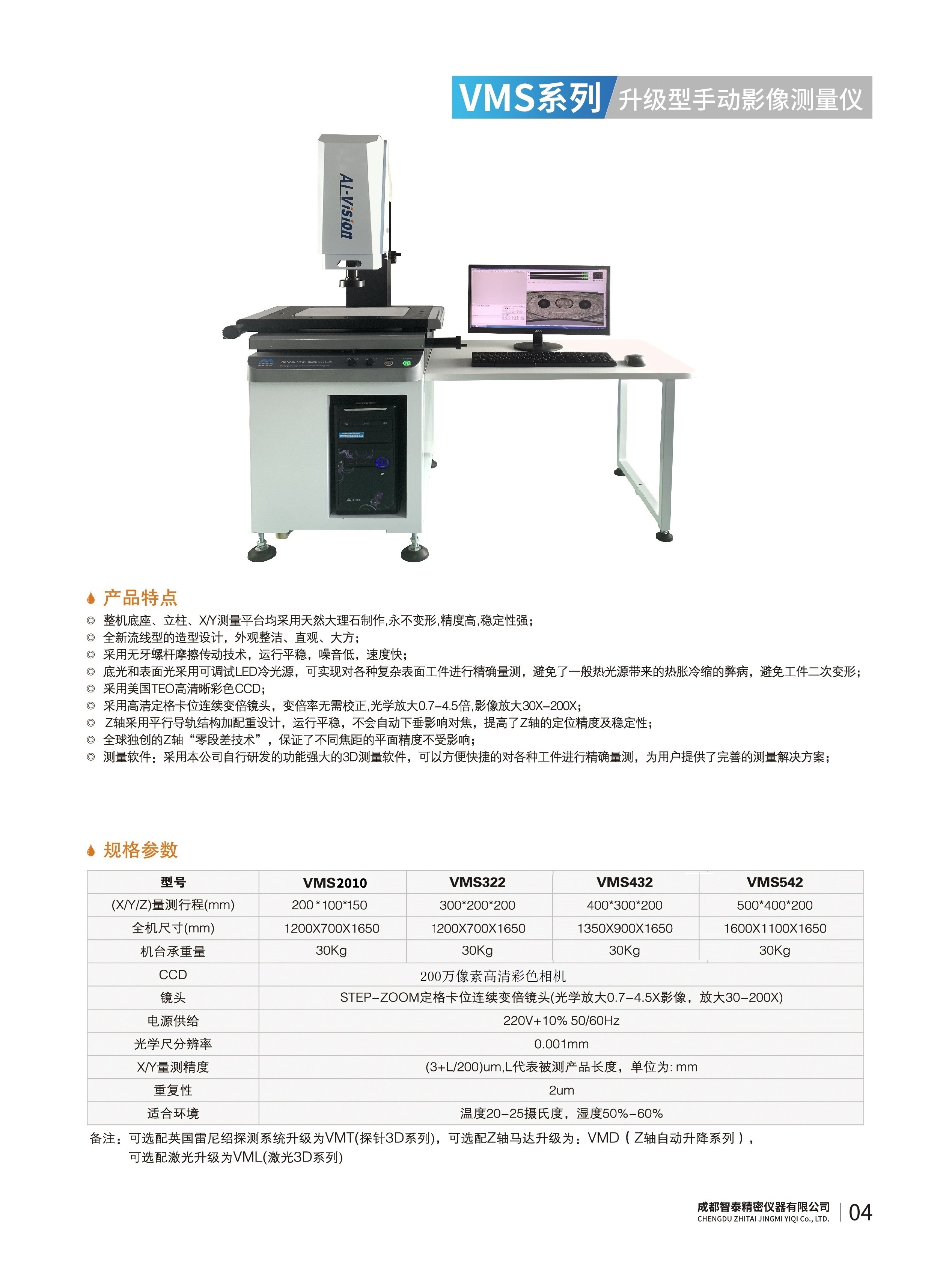 成都智泰精密儀器有限公司專(zhuān)注于精密測(cè)量?jī)x器,人工智能,智能制造領(lǐng)域,專(zhuān)業(yè)從事智能視覺(jué)自動(dòng)化檢測(cè)解決方案的貿(mào)易型企業(yè)。公司成立于2011年,位于天府之國(guó)成都,現(xiàn)有行業(yè)精英十余人,辦公倉(cāng)儲(chǔ)面積200余平米。 公司主要產(chǎn)品為精密光學(xué)影像測(cè)量?jī)x,精密輪廓形狀測(cè)量?jī)x,精密機(jī)器人定位系統(tǒng),精密智能視覺(jué)尺寸檢測(cè)儀器,精密表面缺陷智能檢測(cè)設(shè)備,工業(yè)工程特種機(jī)器人。 公司憑借過(guò)硬的技術(shù)實(shí)力和產(chǎn)品方案,率先進(jìn)入智能視覺(jué)自動(dòng)化檢測(cè)領(lǐng)域,推廣以精密智能視覺(jué)自動(dòng)化檢測(cè)為基礎(chǔ)的機(jī)器人自動(dòng)化應(yīng)用,公司不斷整合上下游的資源,擁有巨大的全產(chǎn)業(yè)鏈優(yōu)勢(shì)。客戶群體覆蓋了我國(guó)精密制造業(yè)的多數(shù)領(lǐng)域,包括航空、航天、軍工、汽車(chē)、新能源、光伏、食品,精密電子、精密機(jī)械、模具、PCB、LCD、五金、塑膠、醫(yī)療、教育、計(jì)量及科研院所等行業(yè)。 公司創(chuàng)新的產(chǎn)品能滿足生產(chǎn)與制造行業(yè)客戶的要求,訓(xùn)練有素的工程師能及時(shí)提供多種技術(shù)服務(wù),如解...